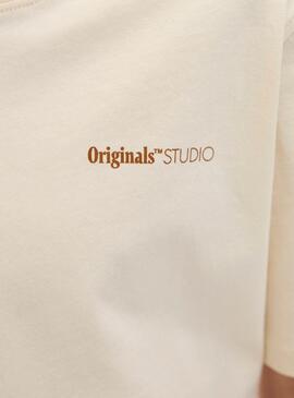 Camiseta Jack And Jones. Modelo Varenna Painted. Color beige. Estampado en la espalda. Cuello redondo elástico. Ajuste regular. Tejido con tacto suave. El modelo mide 154cm y lleva la talla 152.
