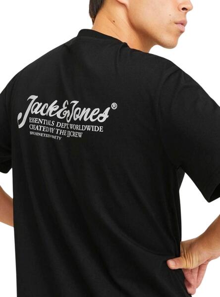 Camiseta Jack and Jones. Modelo Beau. Color negro. Cuello redondo. Manga corta. Ajuste ligeramente holgado. Logo estampado en el pecho y en la espalda. Detalles en blanco. Inspiración vintage.