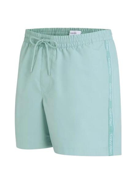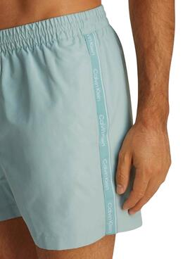 Bañador Calvin Klein. Color tuquesa. Tejido reciclado. Largo medio. Cintura de goma ajustable con cordones. Bolsillos laterales. Bolsillo trasero. Forro de malla. Cinta con logo de Calvin Klein en los laterales.