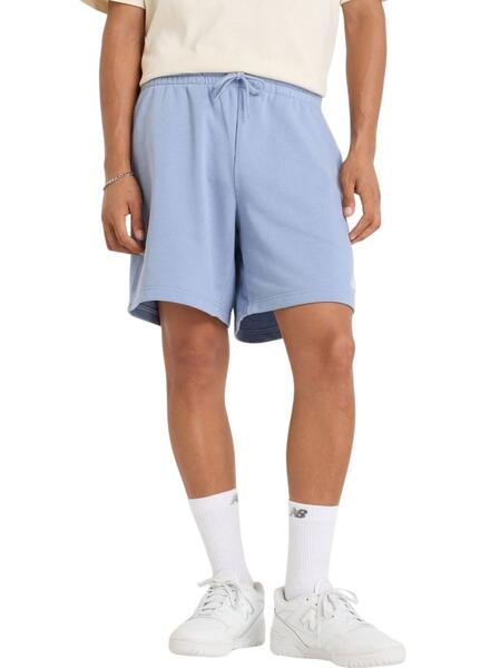 Pantalón corto New Balance. Tejido suave. Color azul. Cintura de goma ajustable con cordones. Corte relajado. Bolsillos laterales. Un bolsillo trasero. Logo bordado en la parte delantera.